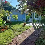 Die am Strand Sable Bleu, Maison D'Architecte verfügt über eine Terrasse mit Blick auf den Garten und ist 42 Autominuten vom Flughafen Bordeaux entfernt gelegen.